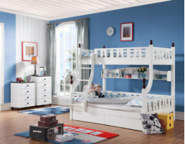 进口芬兰松+水性漆的地中海或本色松木系列,也很适合喜欢实木空间的娃儿。